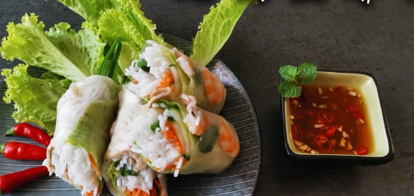 - 準備所有生春捲材料:蔬菜切絲、蛋白質煮熟、醬料調好。
