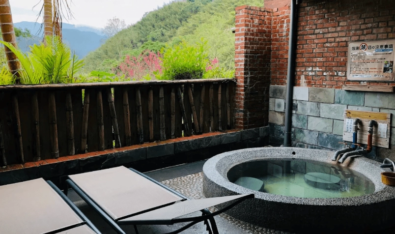 尖石的溫泉水質屬於碳酸氫鈉泉,也就是俗稱的「美人湯」。摸起來滑潤,對皮膚很好。但說實話,台灣有美人湯的地方不少,尖石真正的優勢在於它的環境。它位於山區,大多數湯屋都倚著溪谷或面對山景,你泡湯時看出去的不是水泥牆,而是整片的綠意。這種被大自然包圍的放鬆感,是都市裡的溫泉飯店很難比擬的。