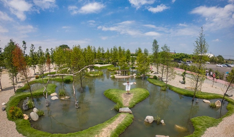 如果你問斗六的爸媽週末去哪,十個有八個會提到這裡。這是一個以環保為主題的親子公園,設施都是用回收材料或環保概念設計的。最吸睛的是那座好幾層樓高的「水管溜滑梯」,小孩爬上滑下可以玩上百次。此外還有攀爬網、沙坑、盪鞦韆等。整個公園樹蔭不少,夏天來也不會太曬。完全免費,旁邊就有停車場和洗手間,非常方便。