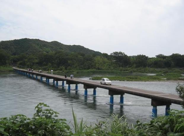沉下橋(沉下橋)是四國地區特有的橋樑形式,主要分佈在吉野川流域。這些橋樑沒有欄杆,橋面較低,在洪水來臨時會完全沒入水中,避免被急流沖毀。四國沉下橋的存在與當地的地理環境密切相關——四國多山,河流湍急,颱風季節洪水頻發。