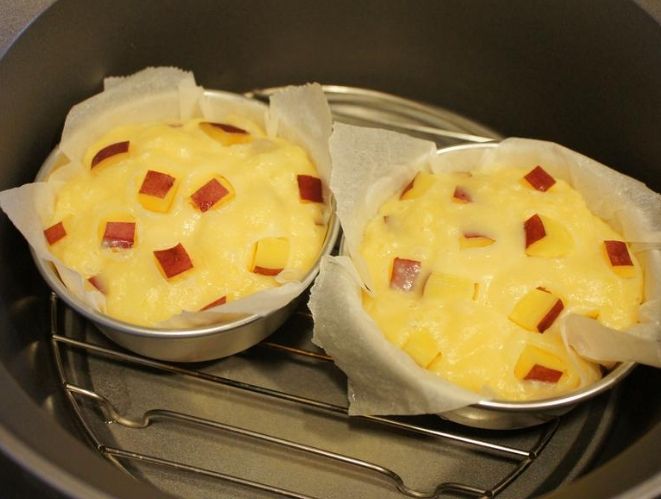 把處理好的地瓜放進內鍋,內鍋絕對不要加水!很多人就是在這裡搞錯,以為內鍋也要加水。