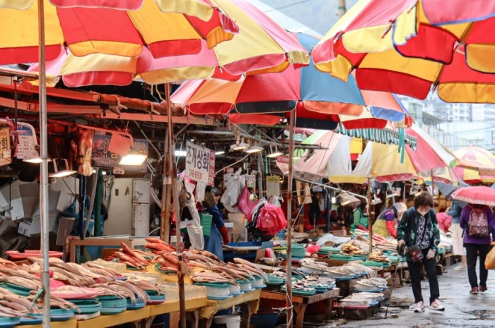 這天的釜山男生行程從札嘎其市場開始。作為韓國最大的水產市場,這裡的生猛海鮮絕對能滿足你的味蕾。我建議找幾個旅伴一起分享,因為份量都很大。