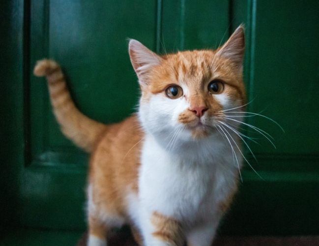 | 末端微微上翹擺動 | 友好或邀請 | 頭部摩擦物體、呼嚕聲 |