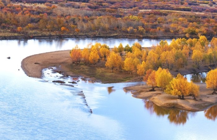 - 介紹: 在額爾古納市區邊上,山頂俯瞰濕地全景,河流蜿蜒如巨龍盤踞在草原森林間,場面宏大壯觀得讓人屏息。秋天濕地色彩斑斕,層次感絕了!我個人覺得比根河濕地視野更開闊震撼。