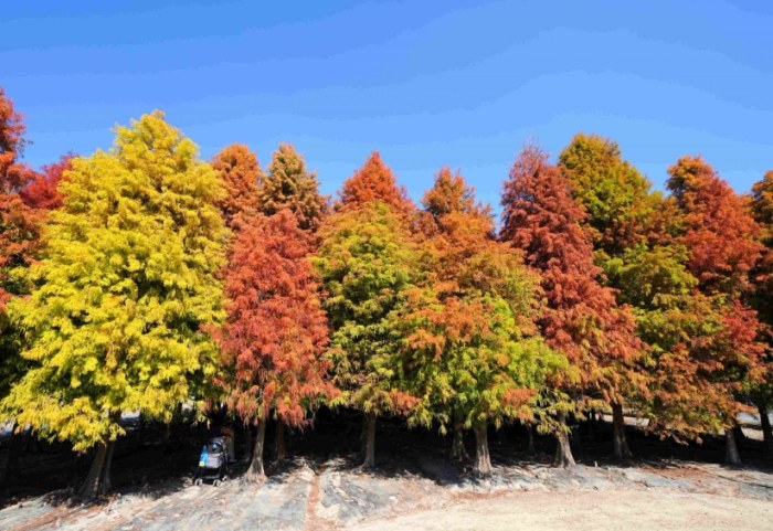 最佳參觀時間是12月到隔年1月,落羽松最紅的時候。其他季節雖然沒有變色,但綠意盎然的樣子也很美。