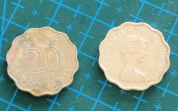 使用前最好在不顯眼的地方試一下。別像我第一次用時,直接噴滿整個硬幣,差點毀了幣緣的刻字。