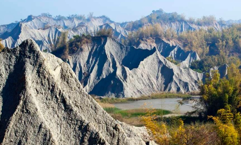 我第一次到草山月世界時,正好是黃昏時分。那片光禿禿的泥岩地形,在夕陽下呈現出金黃色的光澤,看起來真的像月球表面一樣神秘。雖然名字聽起來有點荒涼,但實際走進去,你會感受到一種寧靜的美。