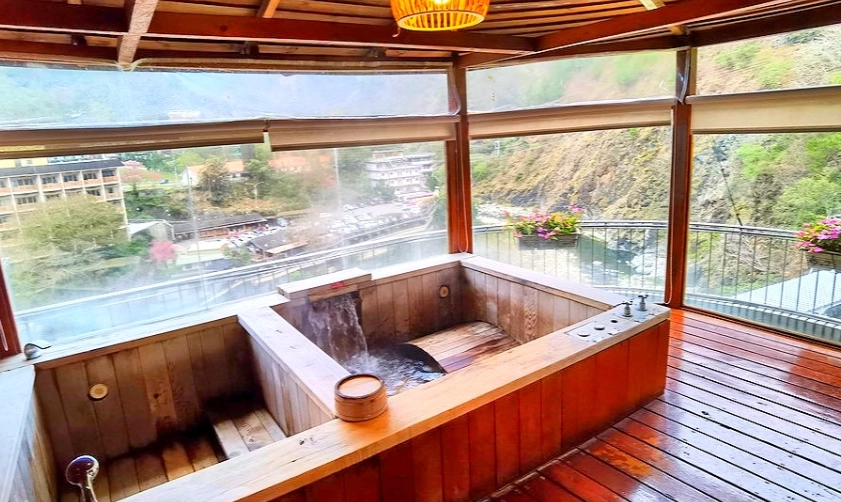 谷關是台中最知名的溫泉區,泉質屬於碳酸氫鈉泉,泡完皮膚會感覺很滋潤。這裡的湯屋大多走自然風,環境清幽。我特別喜歡一家叫「谷關溫泉飯店」的湯屋,他們的私人湯屋有面對山谷的窗戶,泡湯時能看到雲霧繚繞的山景,非常療癒。價格方面,平日大約800台幣起,假日會貴一些。缺點是離市區遠,開車要一個多小時,而且旺季時很難預約。