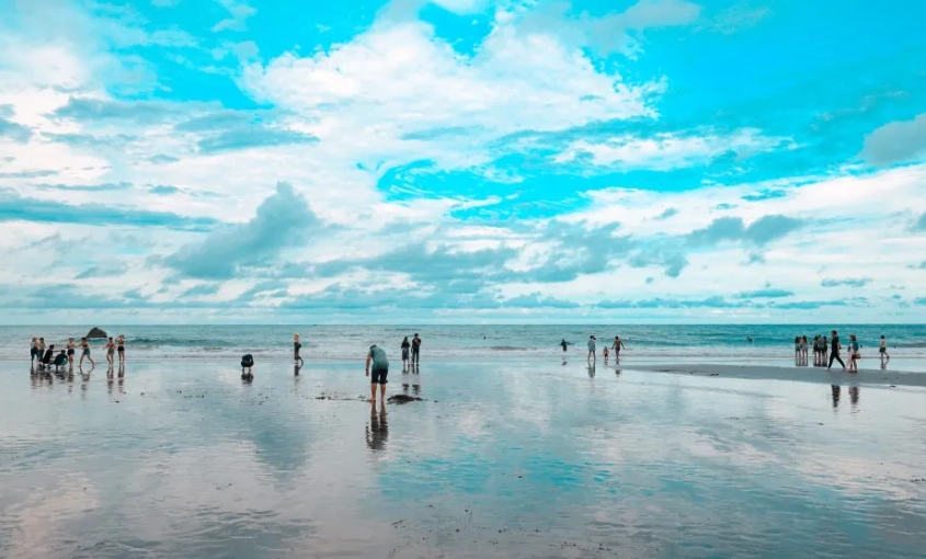 不過,別以為天天去都能看到。我第一次去就碰上下雨,整個海灘泥濘不堪,根本沒反射。所以啊,天氣是關鍵。