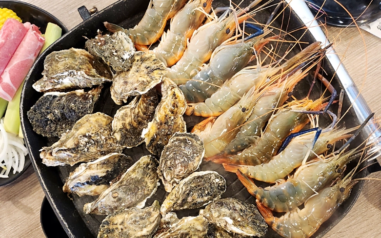這家是熱炒店形式的吃到飽,價格比較親民,大約500元就有。蝦子是冷凍的,但處理得還不錯,調味選擇多,像是胡椒蝦、奶油蝦都有。環境很熱鬧,適合朋友喝酒聊天。
