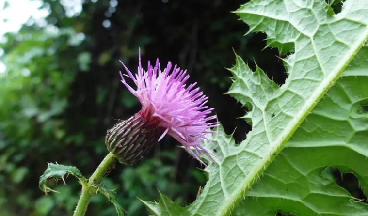在討論大蓟怎么吃之前,得先知道它是什麼。大蓟的外形有點像刺芫荽,葉緣帶刺,所以處理時要小心。我曾經沒戴手套就去摘,結果手被扎得哇哇叫,這點真的要提醒大家注意。