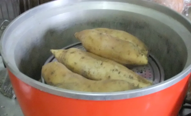 我有次買到很老的地瓜,蒸了快40分鐘才軟。後來學到教訓,買地瓜時挑表皮光滑的,比較新鮮。