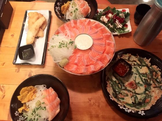 - 生章魚 (산낙지 - Sannakji): 挑戰膽量!活章魚切小段端上桌,觸鬚還在蠕動... 沾香油鹽吃,口感很特別(黏滑、脆)。 廣藏市場 (광장시장) 裡有好幾攤賣。吃的時候務必 細嚼慢嚥 以防吸盤黏住喉嚨!(其實沒那麼可怕,但要注意)。