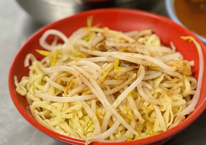 這是超級接地氣的茄萣美食,早餐或午餐的熱門選擇!主角是黃色的油麵(有時是白麵線),煮熟後快速過冷水保持Q彈,放涼。精髓在於淋上那鹹香中帶點微甜的「豆醬」(類似豆瓣醬但較稀、不死鹹,常用黃豆或黑豆發酵製成),再加上滿滿的爽脆豆芽菜(綠豆芽)。最後撒點蒜泥提味(有些店家會給蒜泥水自己加)。簡單、快速、清爽不膩。